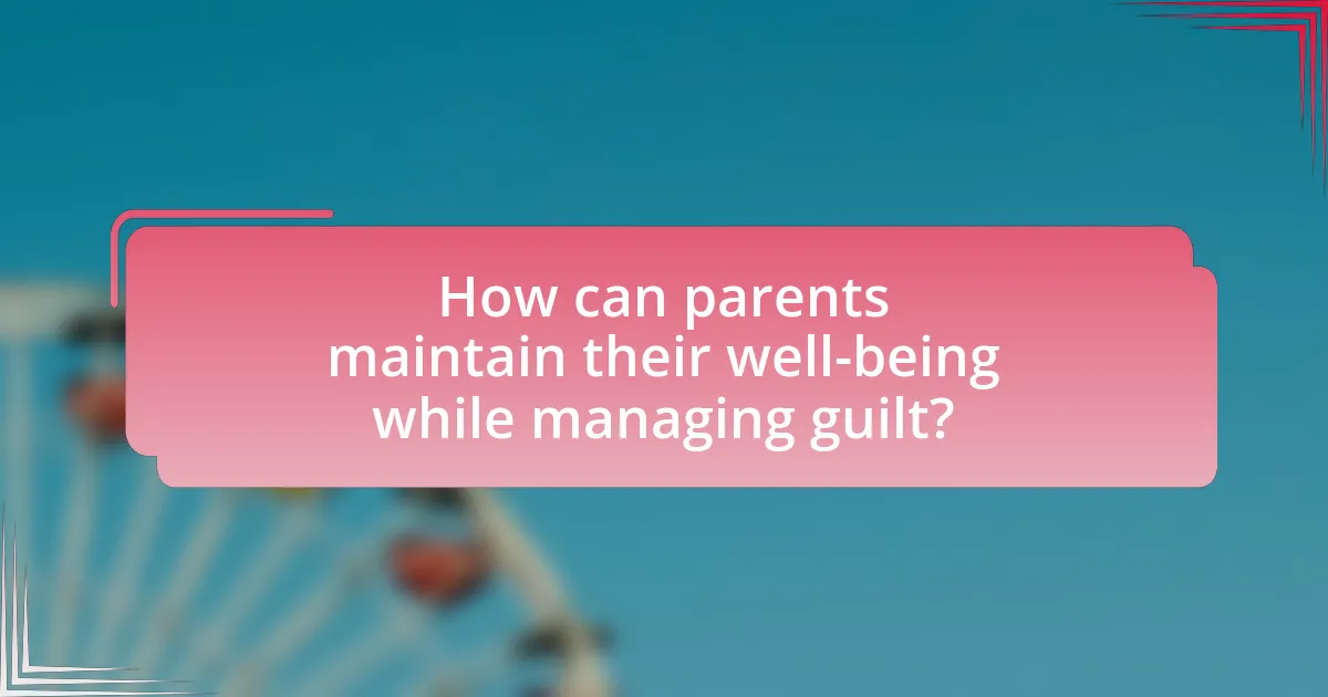 Parents can maintain their well-being while managing guilt by prioritizing self-care and setting realistic expectations. Engaging in regular self-care activities, such as exercise, hobbies, and socializing, helps reduce stress and enhances emotional health. Research indicates that self-care practices can significantly lower anxiety and improve overall well-being, as highlighted in a study published in the Journal of Family Psychology, which found that parents who prioritize their own needs report higher satisfaction in their parenting roles. Additionally, setting realistic expectations helps parents avoid feelings of inadequacy, as unrealistic standards often contribute to guilt. By recognizing that perfection is unattainable, parents can focus on their strengths and celebrate small achievements, fostering a healthier mindset.
