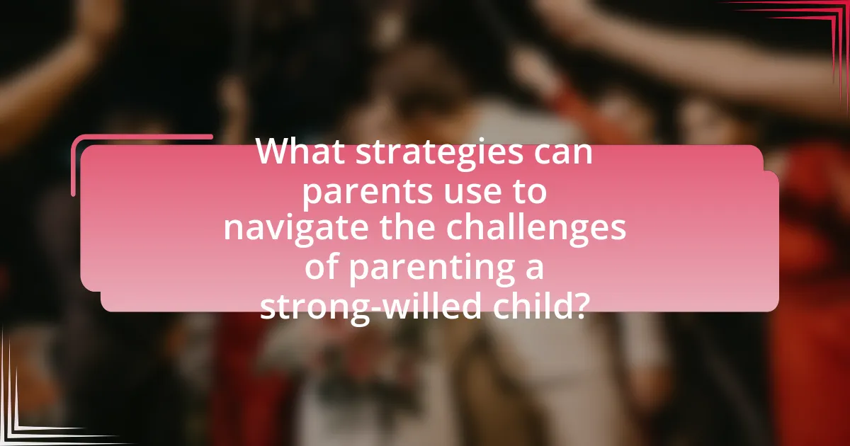Parents can navigate the challenges of parenting a strong-willed child by employing strategies such as setting clear boundaries, using positive reinforcement, and fostering open communication. Establishing clear boundaries helps the child understand expectations and consequences, which is crucial for their development. Positive reinforcement encourages desired behaviors by rewarding compliance and effort, making the child more likely to repeat those behaviors. Additionally, fostering open communication allows parents to understand their child’s perspective, promoting cooperation and reducing power struggles. Research indicates that these strategies can lead to improved behavior and stronger parent-child relationships, as evidenced by studies showing that children respond positively to consistent boundaries and supportive communication.